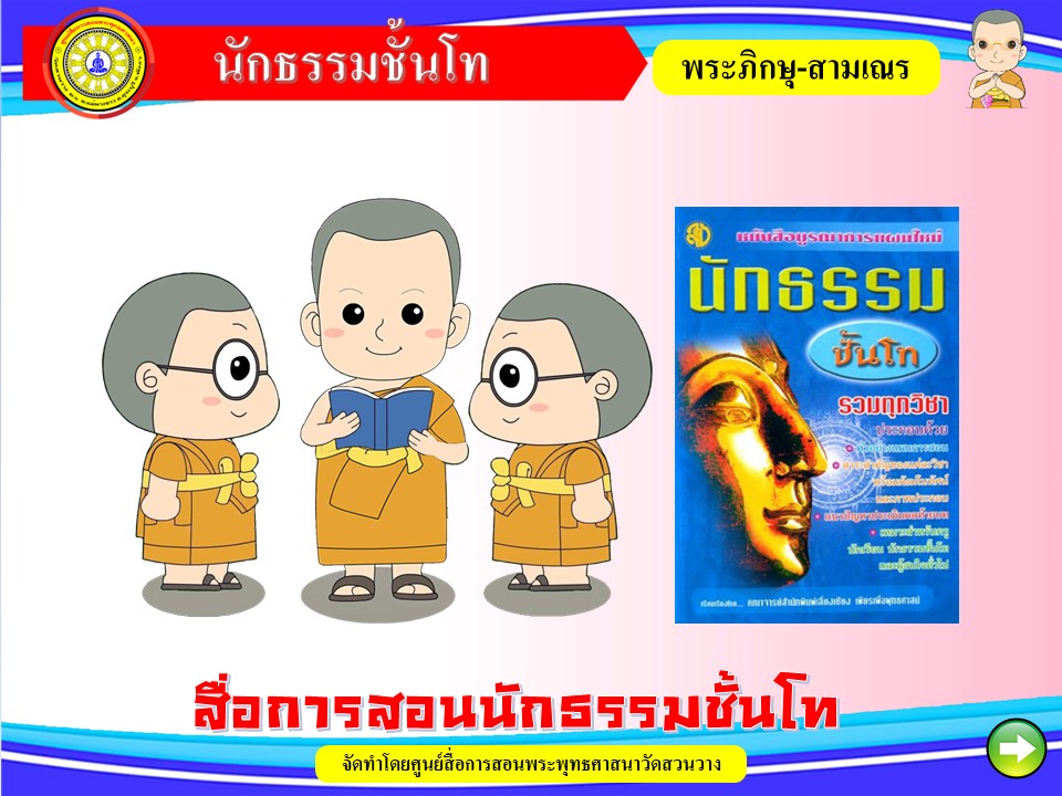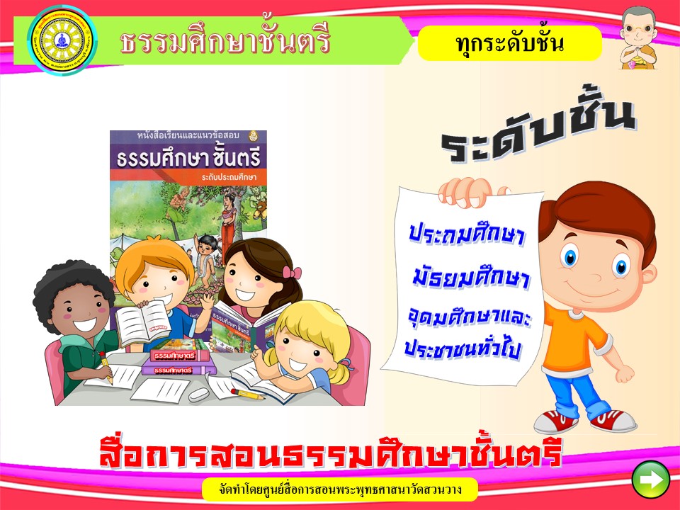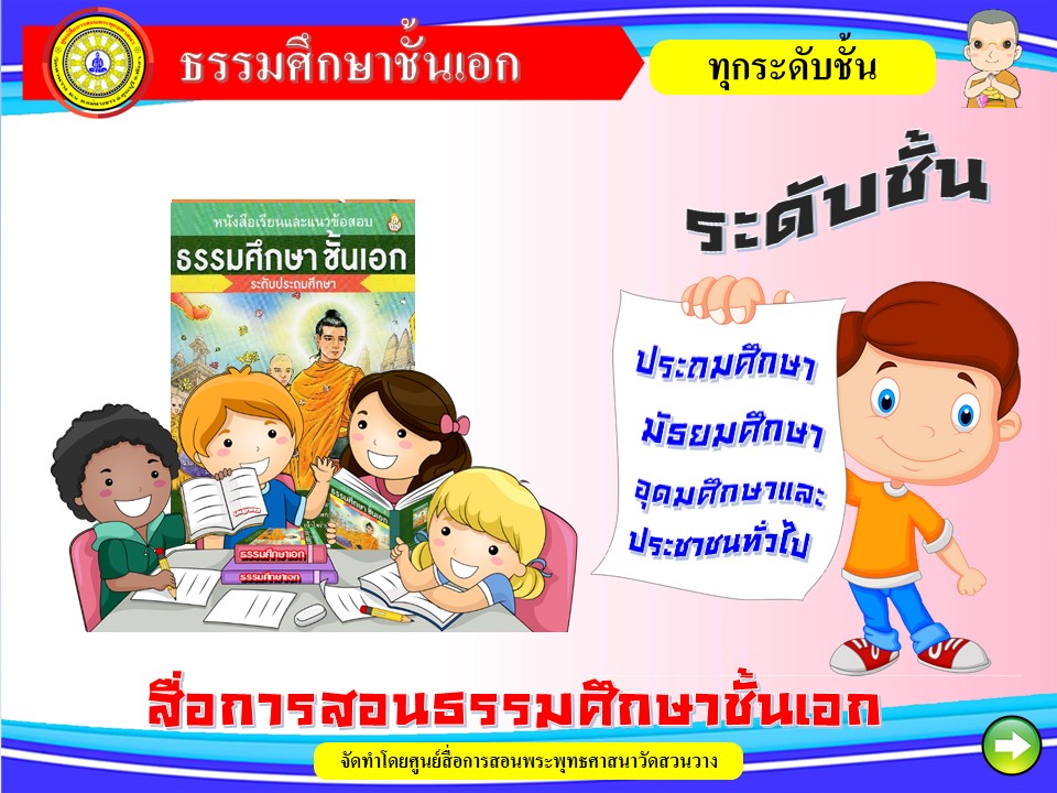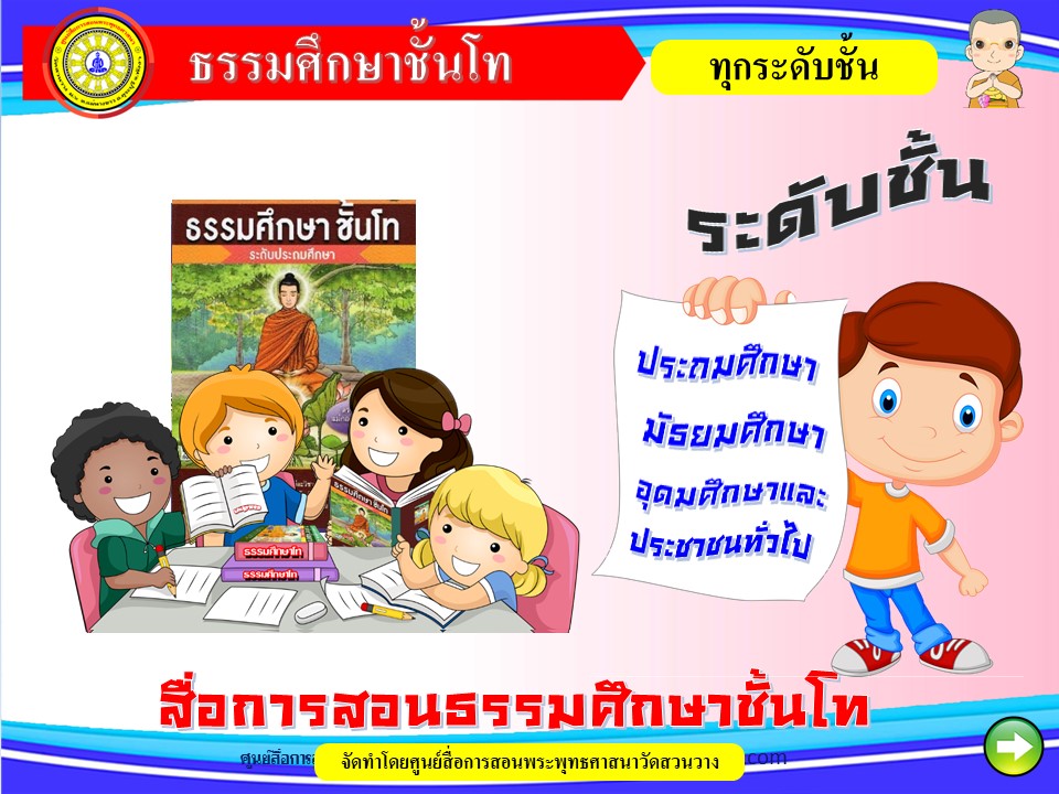 สื่อการสอนนักธรรม-ธรรมศึกษาตรี-โท-เอก คลิกเลือกหมวดที่ต้องการเพื่อเข้าชม