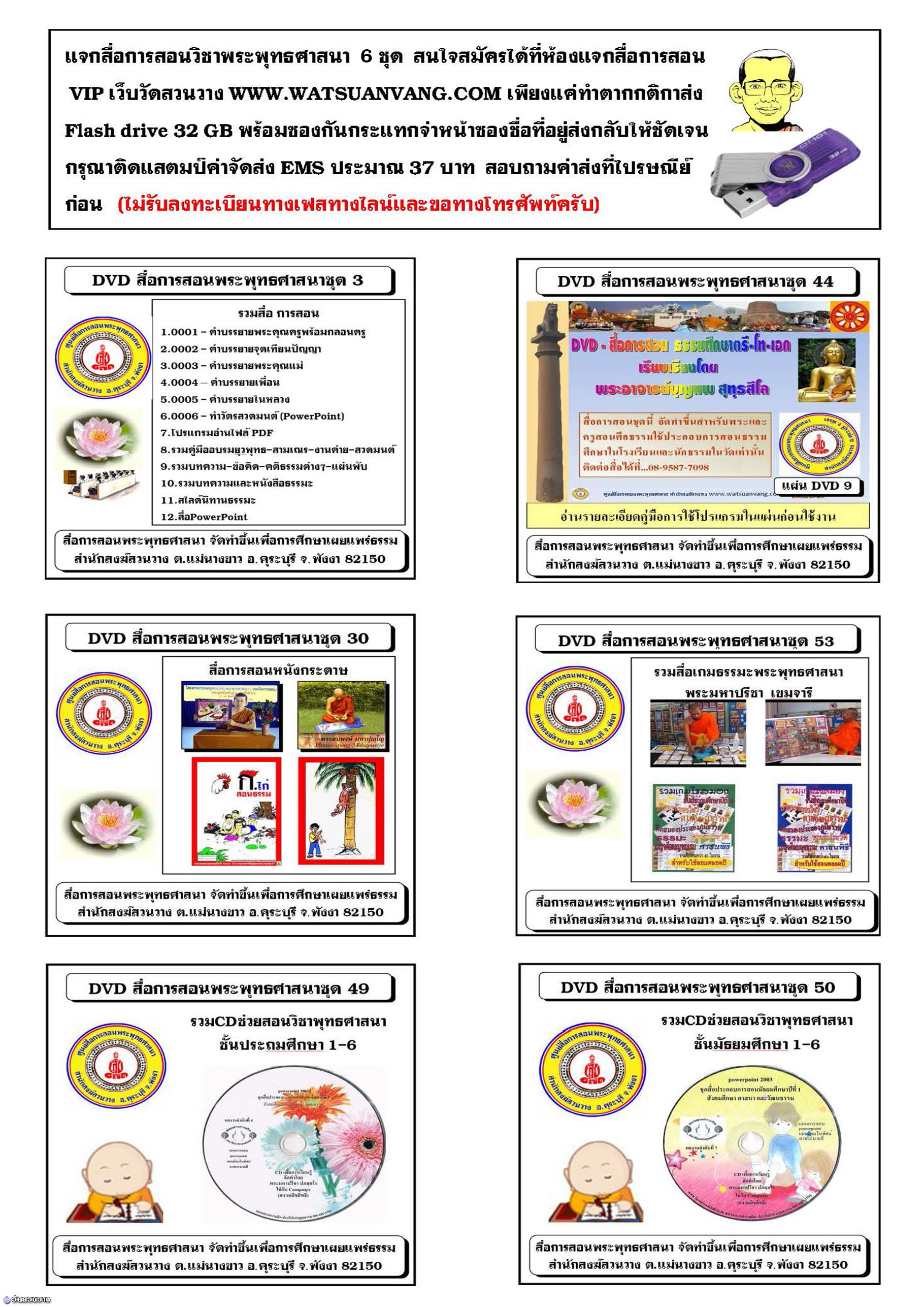 เนื่องข้อมูลเนื้อหามีจำนวนมากถึง 8112 MB (DVD 9 = 1 แผ่น)  ไม่สามารถอัพให้ดาวน์โหลดได้  แต่ได้แจกDVD สื่อการสอนธรรมศึกษา ตรี-โท-เอก รวมเป็นชุด "แจกสื่อการสอนพระพุทธศาสนาจำนวน 6 ชุด"